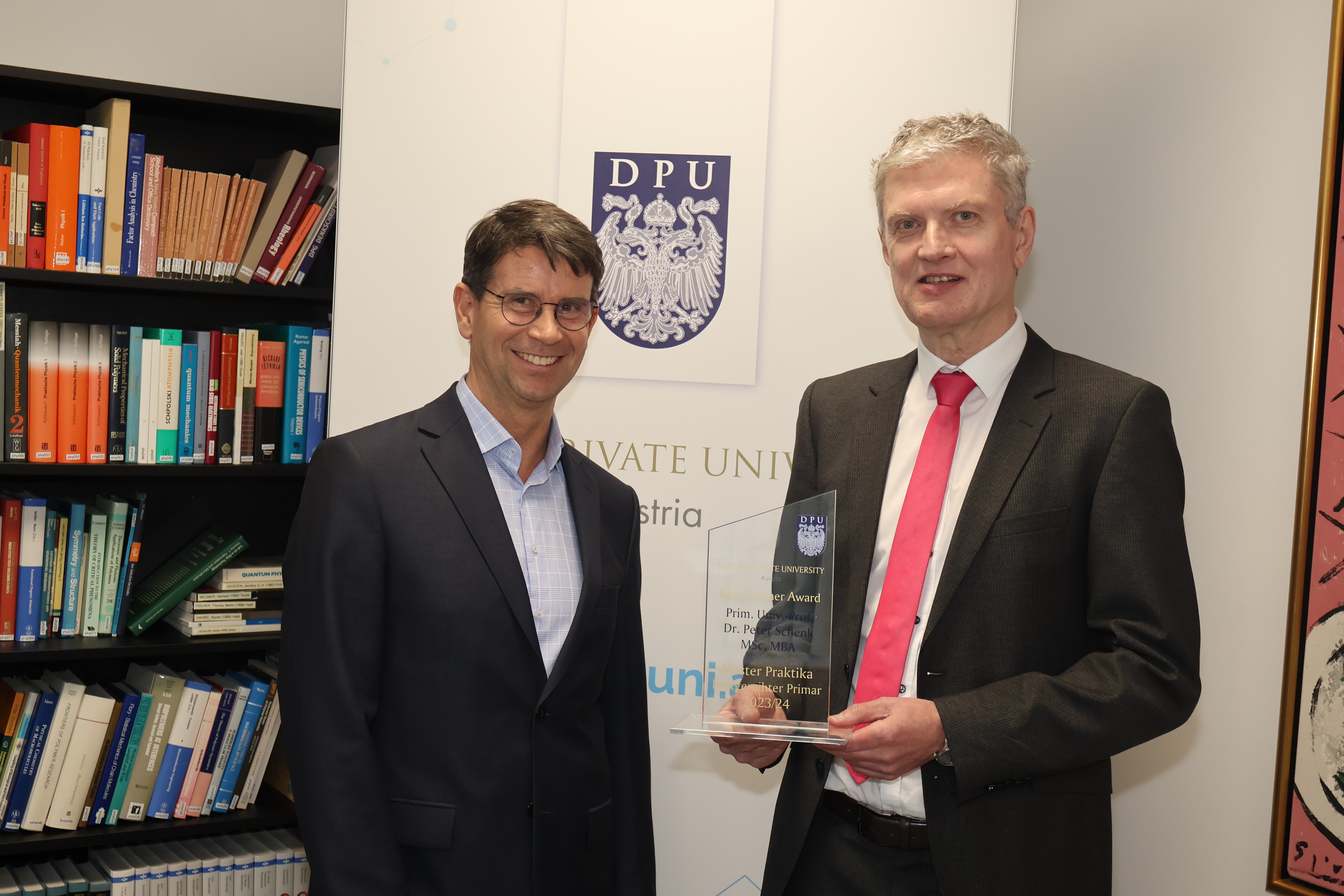 Eine besondere Auszeichnung für herausragende Lehrqualität: Prim. Univ.Prof. Dr. Peter Schenk wurde für seine Leistung aus dem Studienjahr 2023/24 nun mit dem Best Teacher Award in der Kategorie Master Praktika…