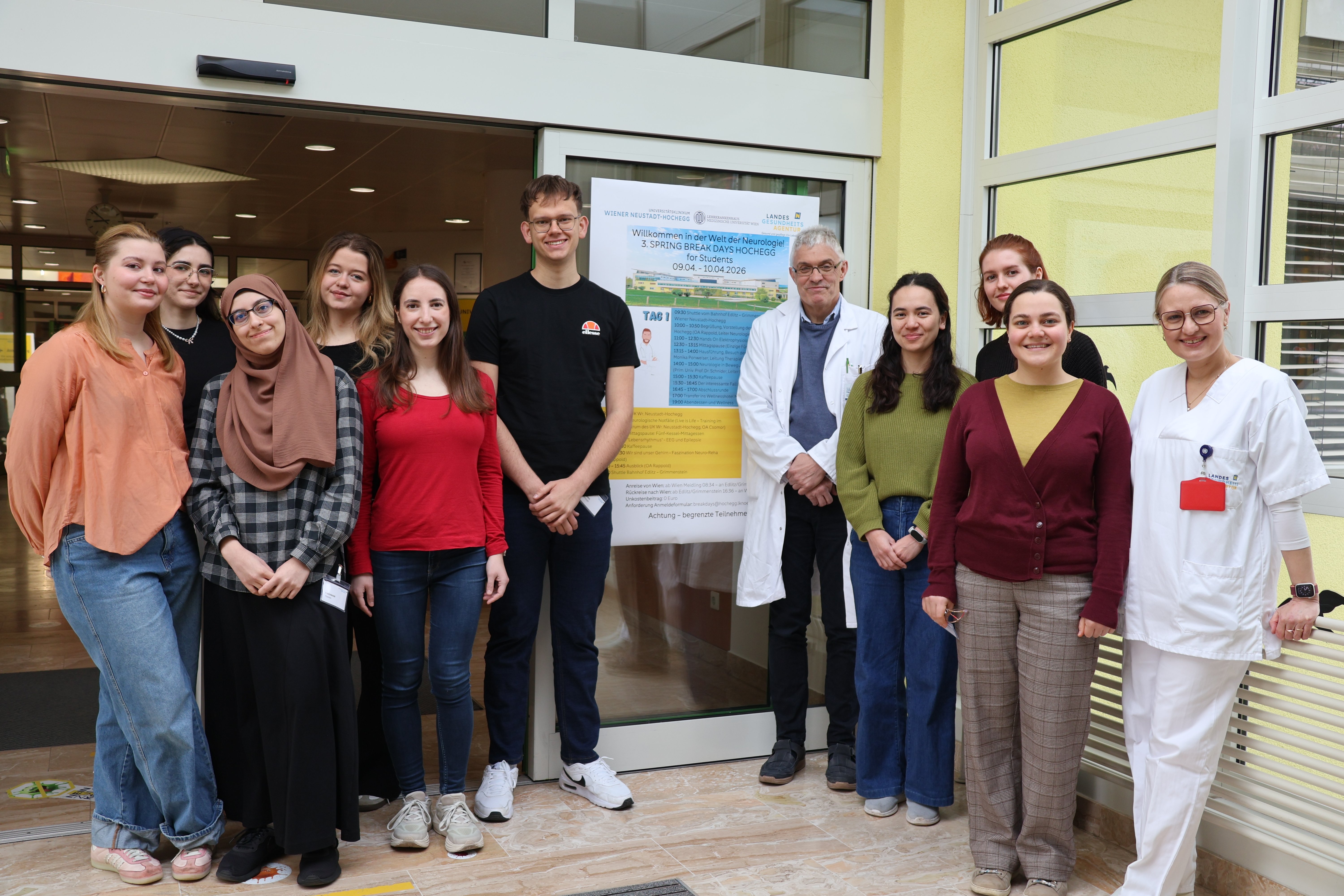 Bereits zum dritten Mal hat die Neurologische Abteilung des UK Hochegg die „Spring Break Days for Students“ veranstaltet – interessierte Studentinnen und Studenten hatten wieder Gelegenheit, die Neurologie und die Fachausbildung im UK Hochegg kennenzulernen.